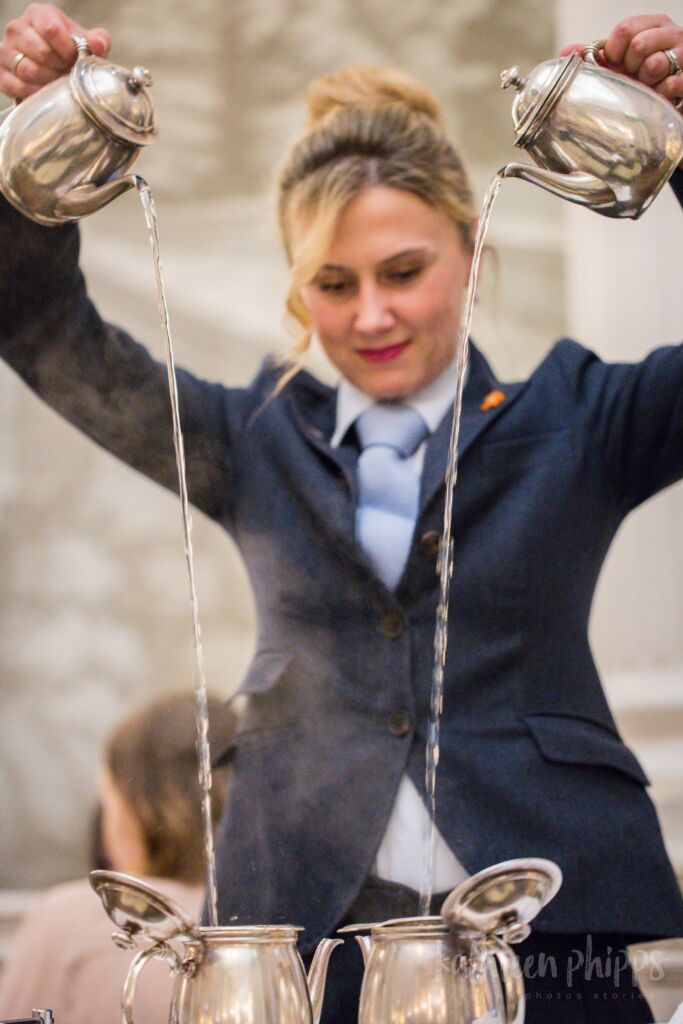 The afternoon tea was served in five separate courses, including the tea, which is a thing unto itself. My friendly server, Patricia, recommended two different kinds of tea to start with, the Balmoral’s special afternoon black tea blend and an earl grey black tea. When she returned with the pots of tea, she didn’t just pour the tea directly into the cups, but instead turned the tea pouring into a bit of a dramatic ceremony, with both pots held firmly in her hands, she poured the tea into the cups below in a steady stream while simultaneously raising the teapots high above her head, and then back down again. It was done with such precision that not a single drop escaped over the sides of the cups.