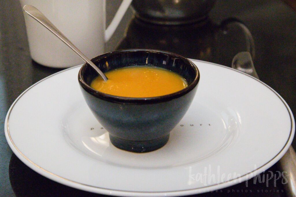 The first course was an amuse bouche consisting of a small cup of carrot and ginger bisque. It was a lovely start to what was to be a superb afternoon tea.